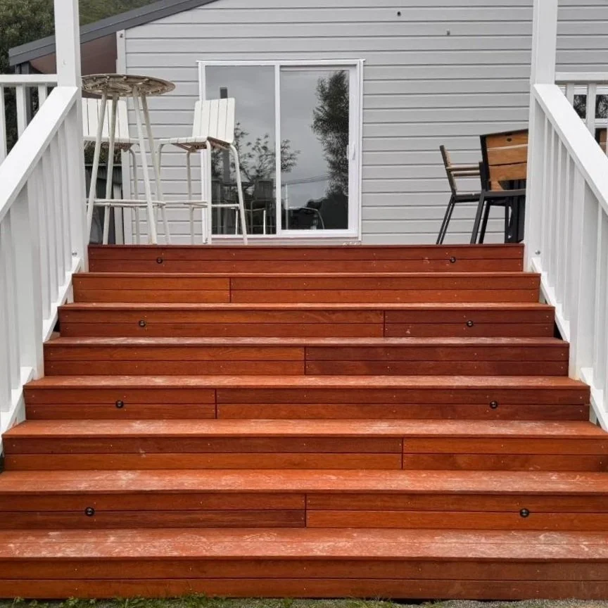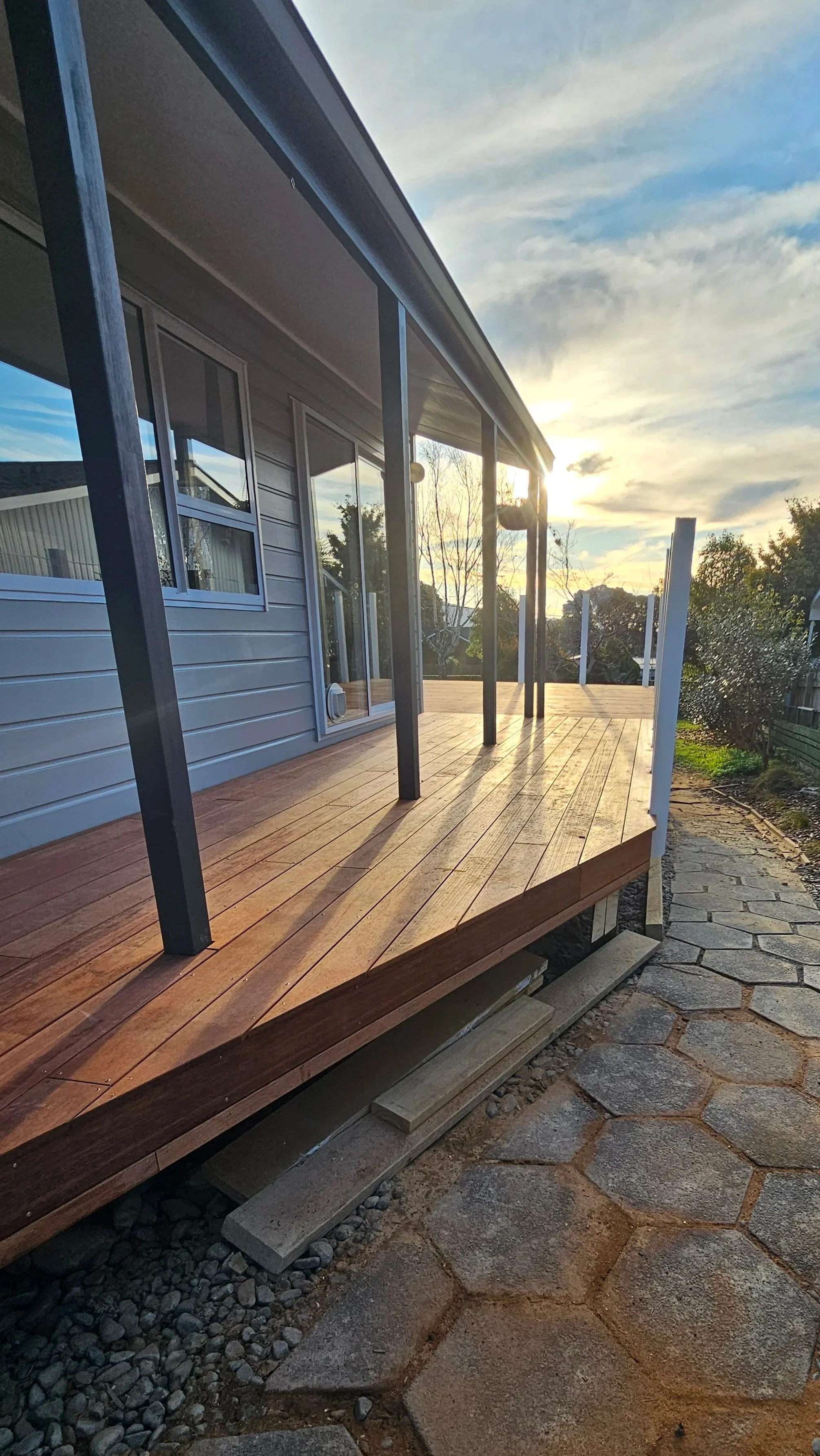The project involved demolishing an unsafe and outdated deck, repairing and refurbishing the cladding to enhance durability, and replacing degraded verandah posts. I also addressed a ground water issue by installing effective drainage solutions to prevent future issues.